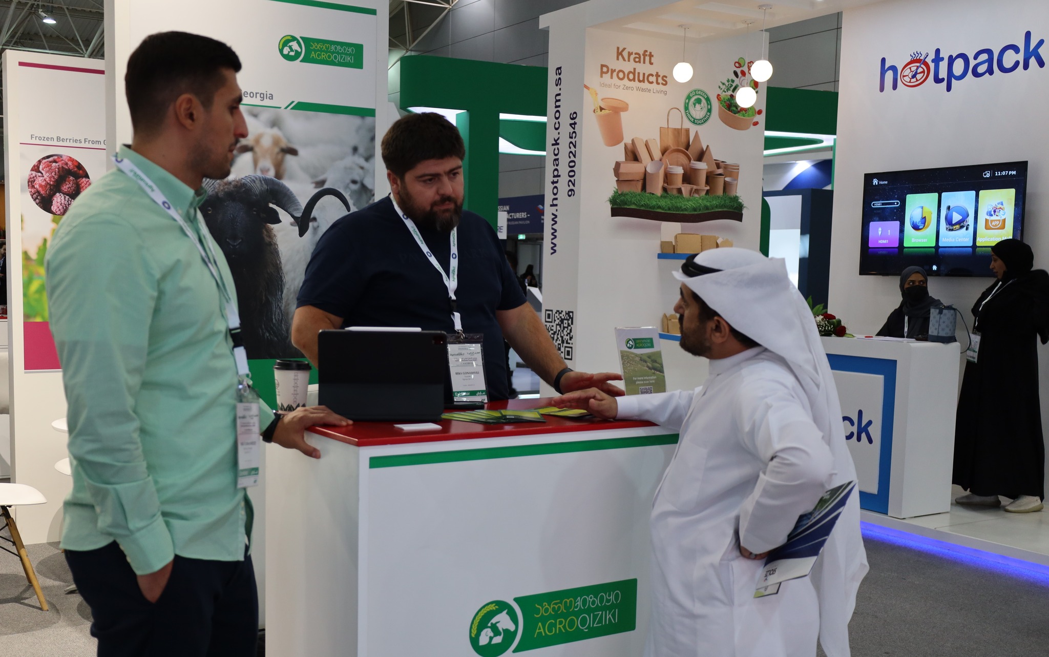 საქართველოს სტენდზე, საუდის არაბეთის სამეფოში საქართველოს ელჩმა, ვახტანგ ჯაოშვილმა საუდის არაბეთის სამეფოს გარემოს დაცვის, წყლისა და სოფლის მეურნეობის მინისტრს, აბდულრაჰმან ალფადლის უმასპინძლა და ქართული პროდუქცია გააცნო.