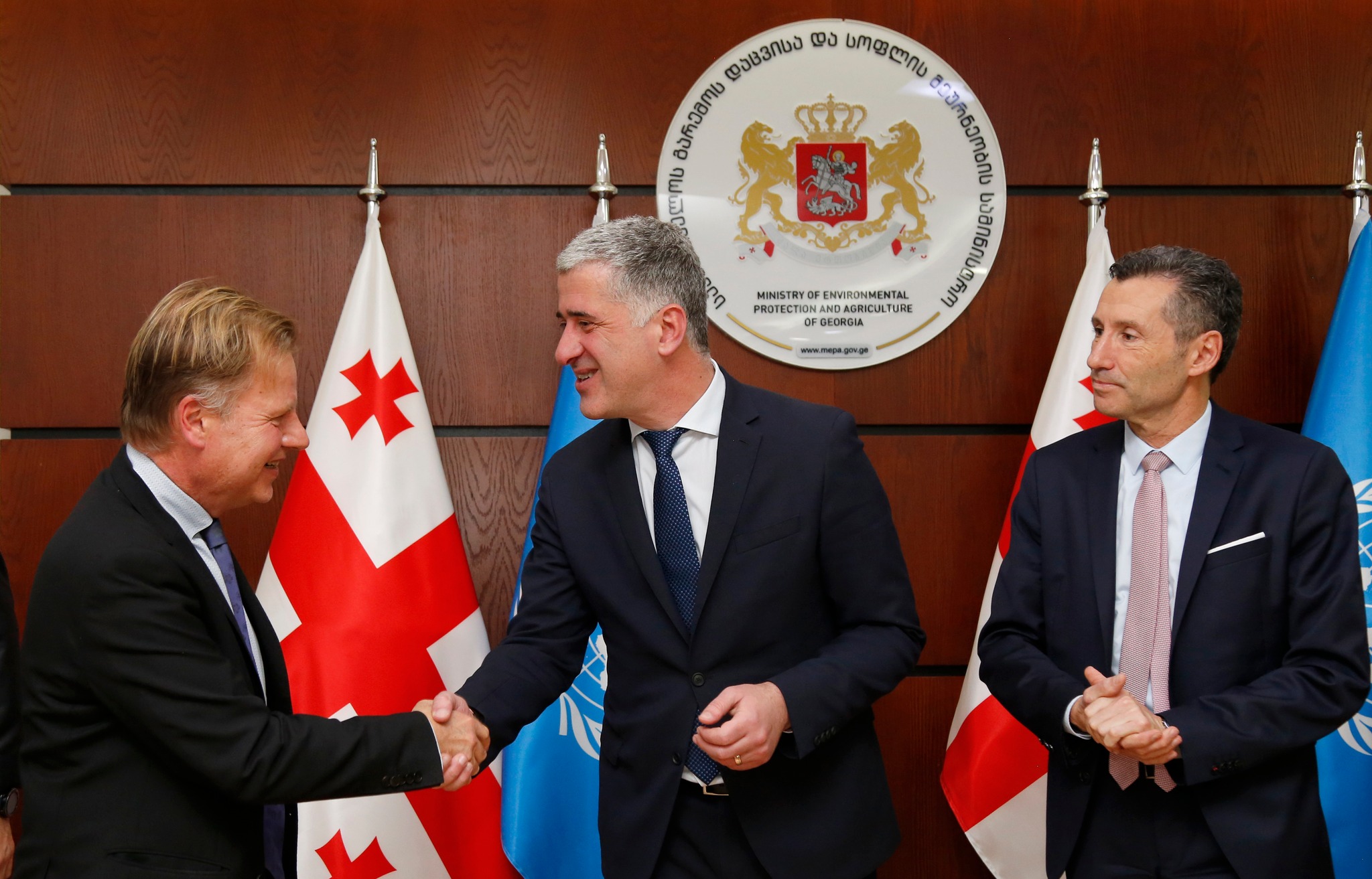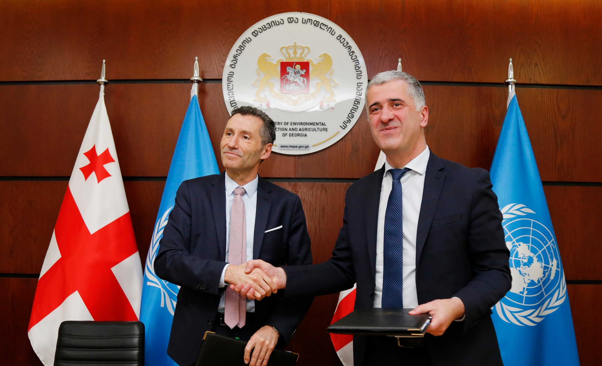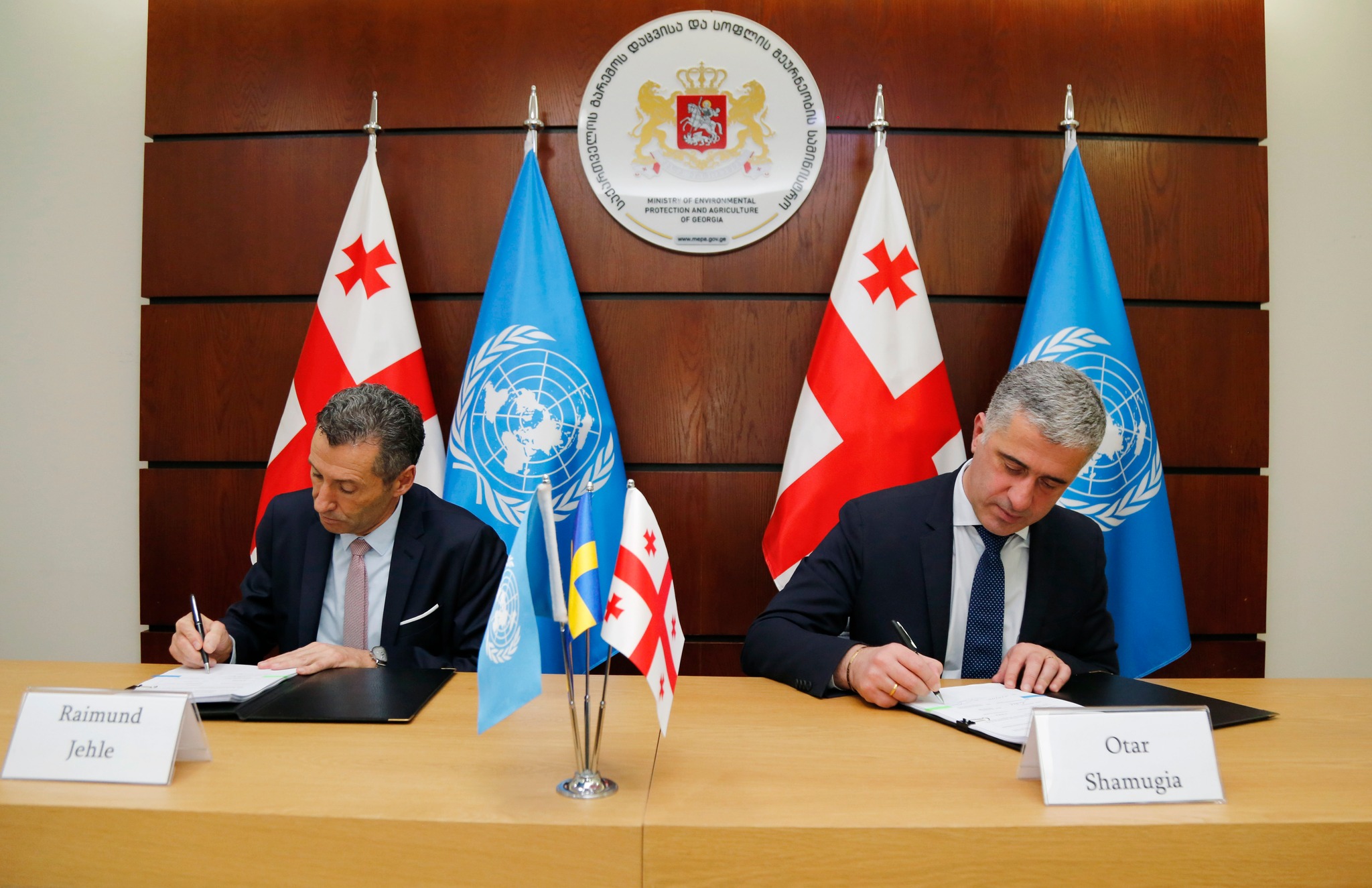 გარემოს დაცვისა და სოფლის მეურნეობის მინისტრმა, ოთარ შამუგიამ და გაეროს სურსათისა და სოფლის მეურნეობის ორგანიზაციის (FAO) წარმომადგენელმა საქართველოში, რაიმუნდ იელემ ხელი შეთანხმების დოკუმენტს მოაწერეს