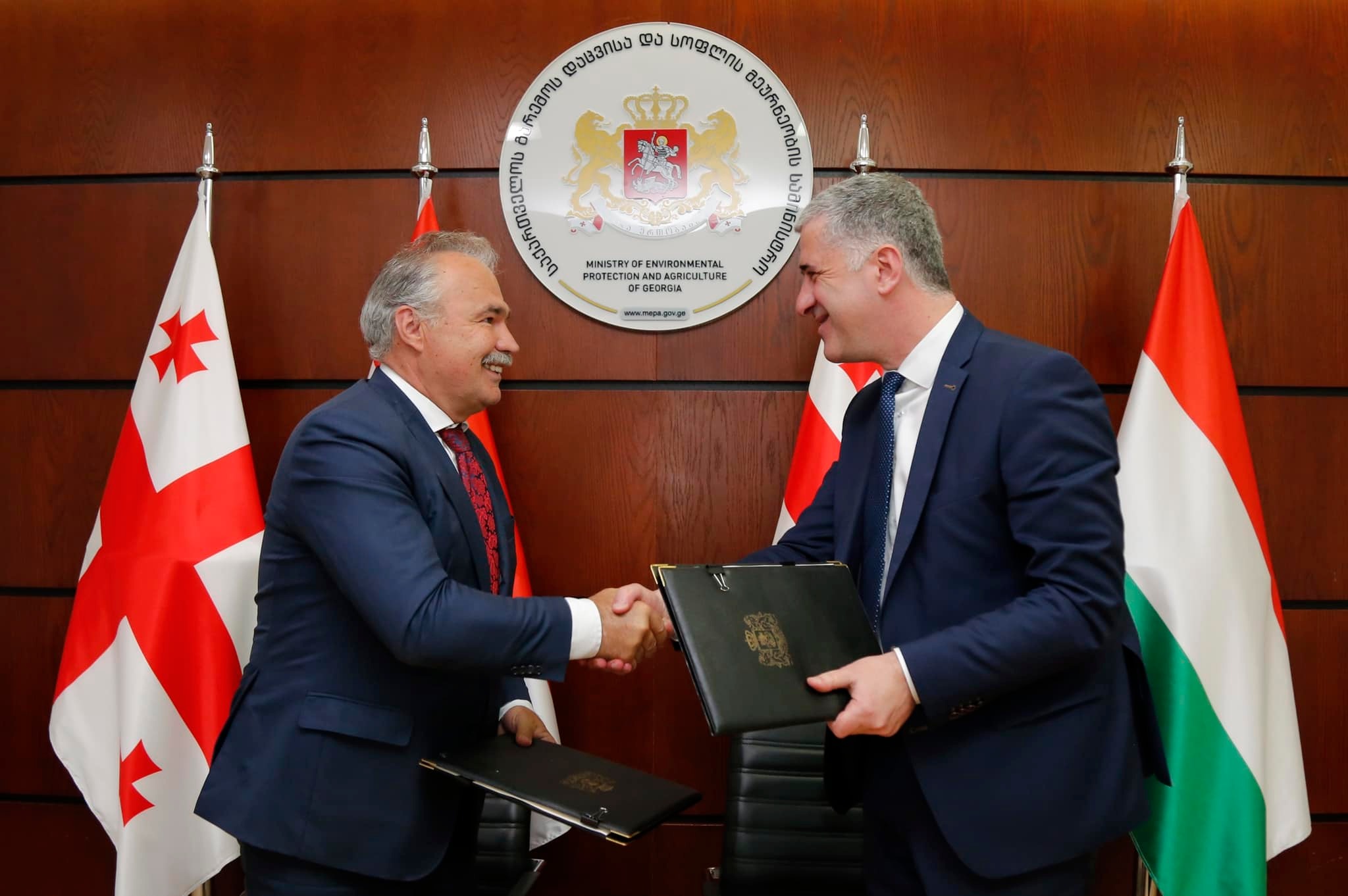 აგროსასურსათო პროდუქციით ვაჭრობის ხელშეწყობის მიზნით, საქართველოს გარემოს დაცვისა და სოფლის მეურნეობის მინისტრმა ოთარ შამუგიამ და უნგრეთის სოფლის მეურნეობის მინისტრმა ისტვან ნაგიმ ხელი თანამშრომლობის მემორანდუმს მოაწერეს.