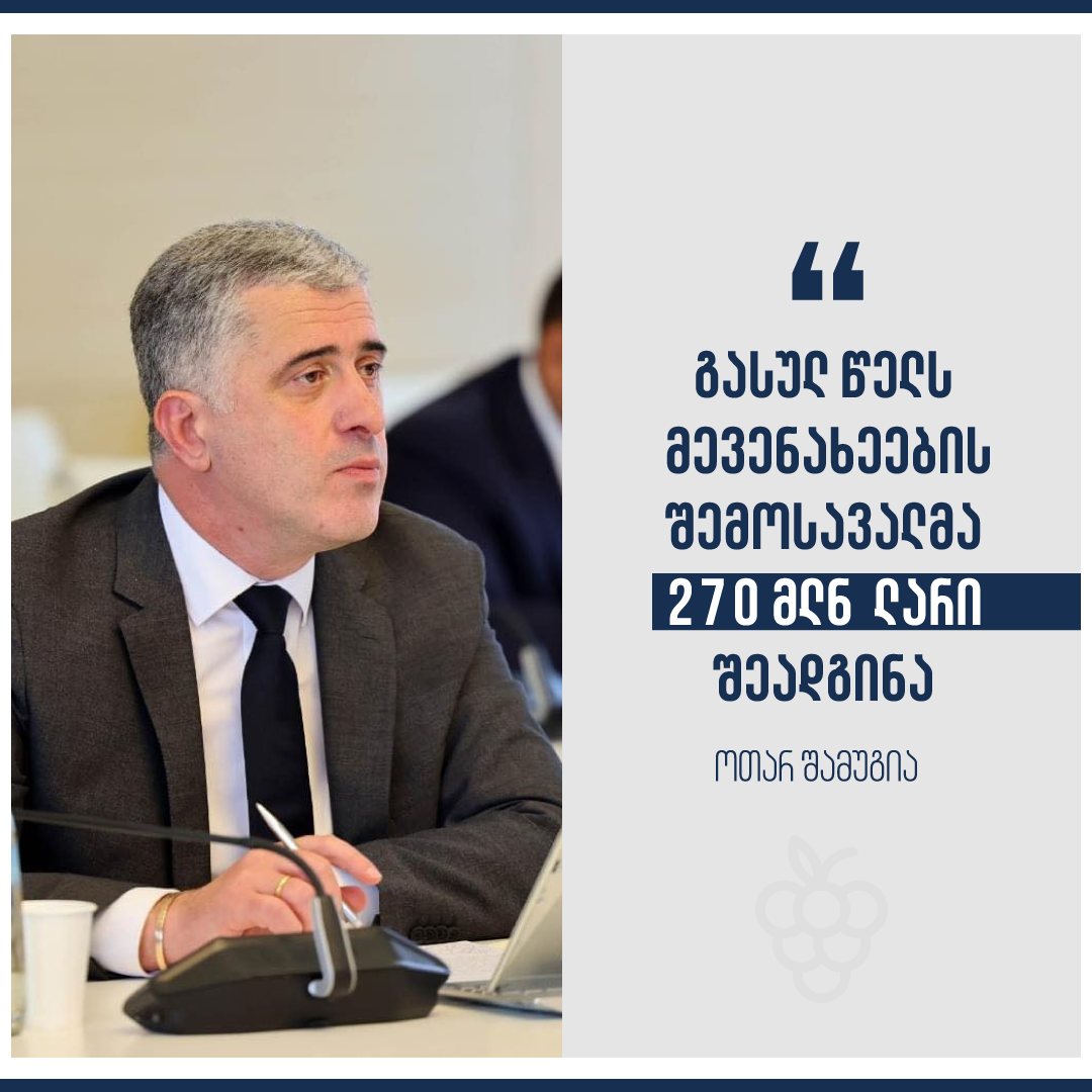 „10 წლის წინ ღვინის ექსპორტი შეადგენდა 20 მილიონ ლიტრს, წელს ველოდებით დაახლოებით 120 მილიონი ლიტრი ღვინის ექსპორტს. თანხებში რომ შევაფასოთ, დაახლოებით 400 მილიონი დოლარის ექსპორტზეა საუბარი ღვინისა და სპირტიანი სასმელების ნაწილში. ეს არის ძალიან დიდი შემოსავლის წყარო ჩვენი მევენახეებისთვის, მეღვინეებისთვის და, ზოგადად, ქვეყნისთვის. მუდმივად გვესმის კრიტიკა, ახლა გვთავაზობენ მიუღებელ მოსავალში გადავიხადოთ სუბსიდია, მაშინ როცა, წლების განმავლობაში ამბობდნენ რომ სუბსიდია იყო ცუდი და არ უნდა განგვეხორციელებინა. ეს არის, ჩემი შეფასებით, პოპულიზმი. ჩვენ ვეხმარებით როგორც მევენახეობის დარგს, ასევე სოფლის მეურნეობის სხვა მიმართულებებს და ეს მხარდაჭერა მომავალშიც გაგრძელდება“, - განაცხადა ოთარ შამუგიამ.