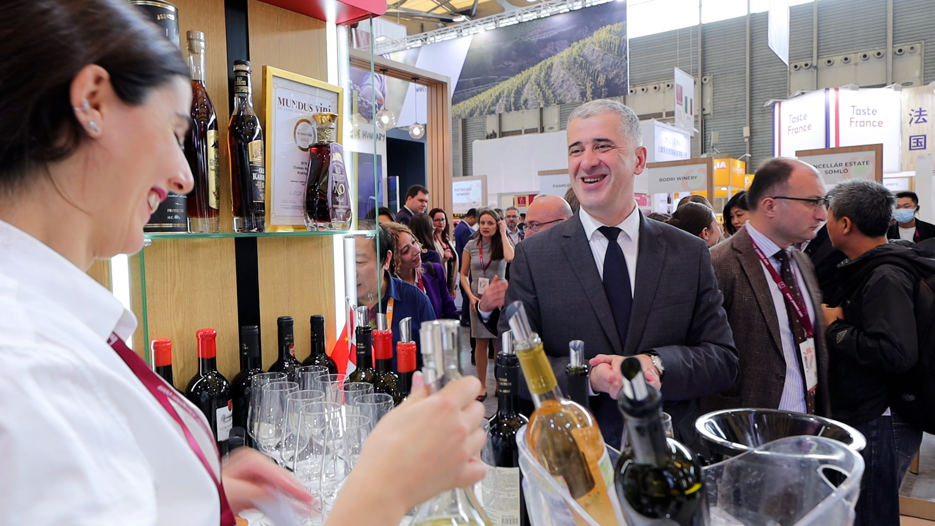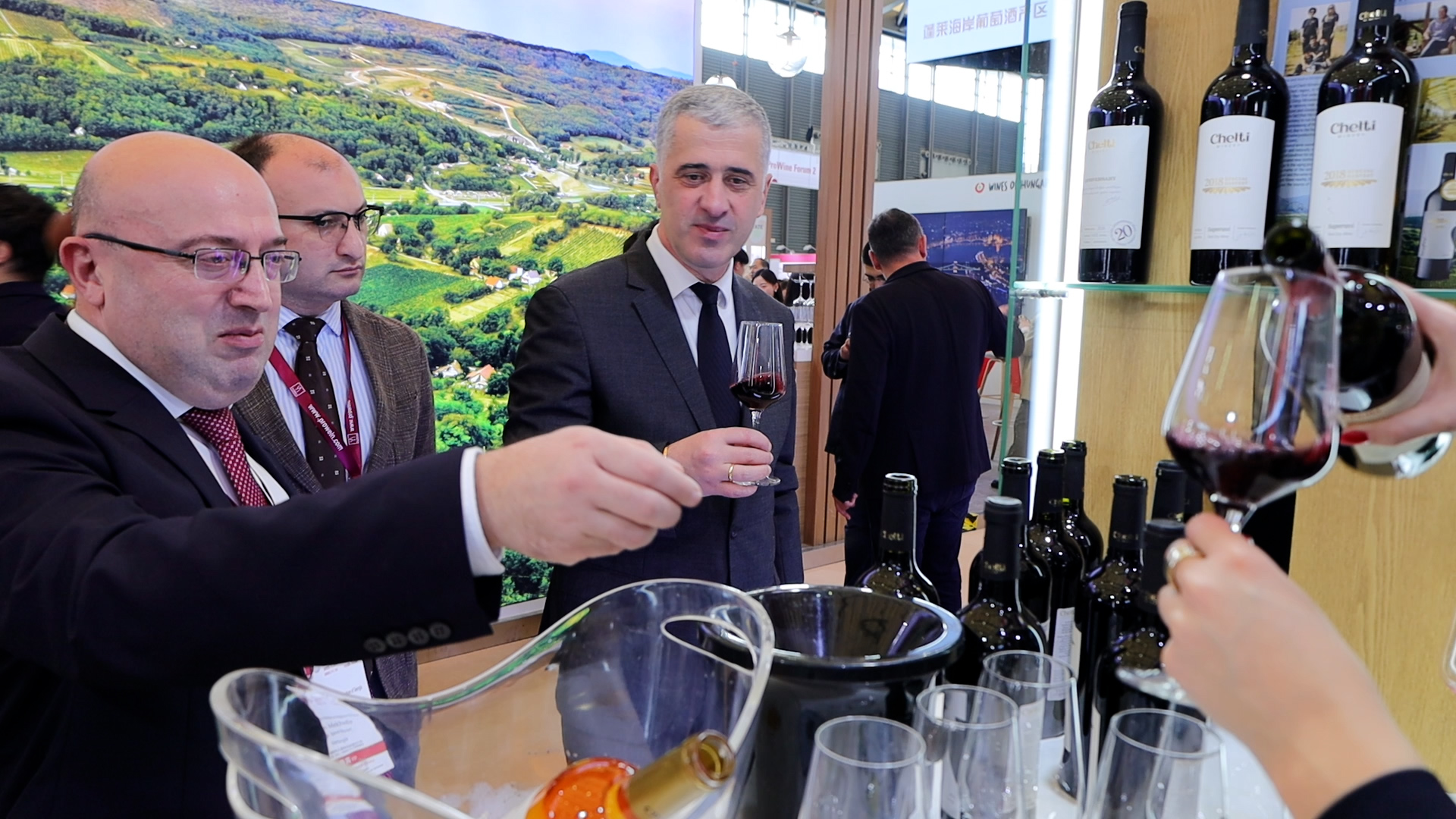 გამოფენაზე, გარემოს დაცვისა და სოფლის მეურნეობის მინისტრ ოთარ შამუგიასთან ერთად, საქართველოს საგანგებო და სრულუფლებიანი ელჩი ჩინეთის სახალხო რესპუბლიკაში არჩილ კალანდია და ღვინის ეროვნული სააგენტოს ხელმძღვანელი ლევან მეხუზლა იმყოფებოდნენ.