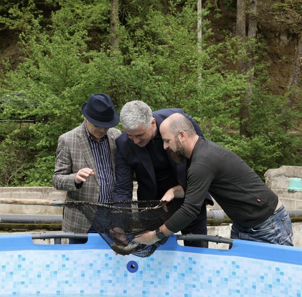 ველური ბუნების სააგენტოს ნაკადულის კალმახის საშენში, ოთარ შამუგიასთან ერთად, გარემოს დაცვისა და სოფლის მეურნეობის მინისტრის მოადგილე იური ნოზაძე და სააგენტოს წარმომადგენლები იმყოფებოდნენ, რომლებმაც მდინარის ქვირითით დათევზიანებაშიც მიიღეს მონაწილეობა.