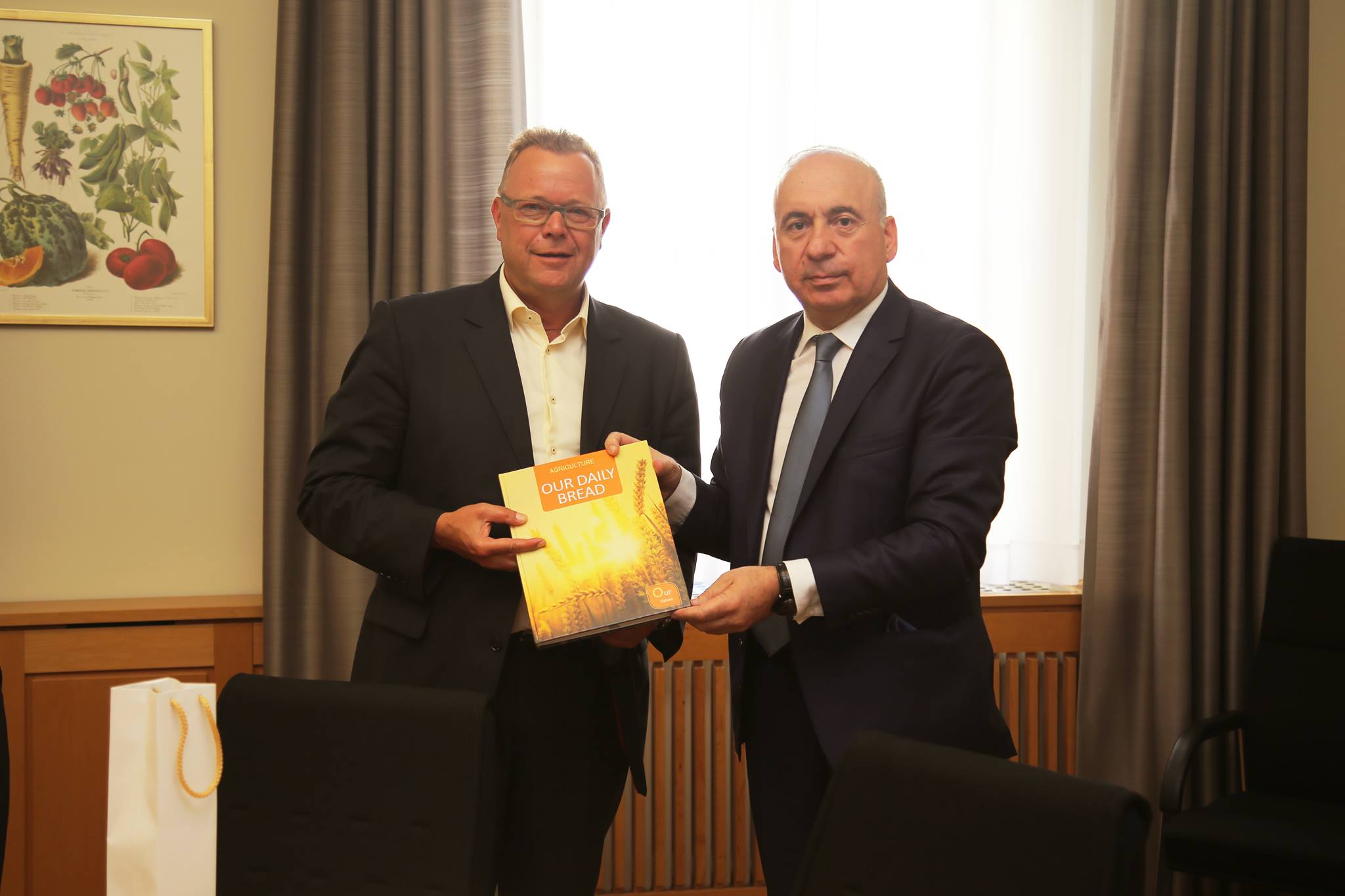 ვიზიტის ფარგლებში, მინისტრის მოადგილე სოლომონ პავლიაშვილი გერმანიის ფედერაციული რესპუბლიკის სურსათისა და სოფლის მეურნეობის მინისტრის მოადგილეს მიხაილ შტიუბგენს შეხვდა.