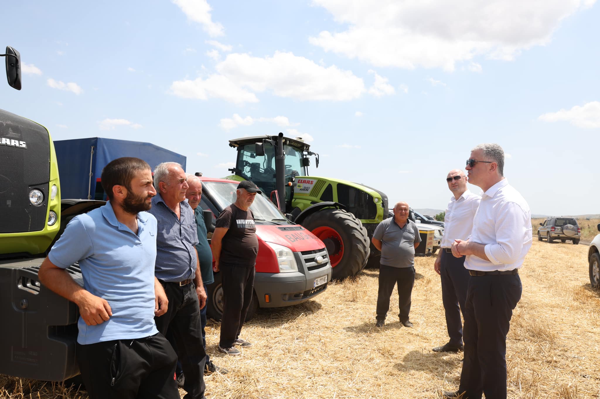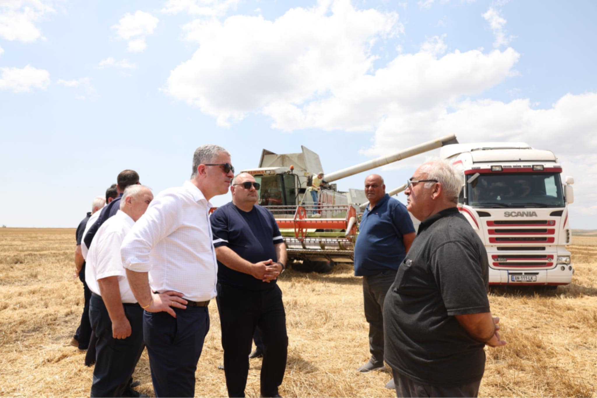 გარემოს დაცვისა და სოფლის მეურნეობის მინისტრი ოთარ შამუგია, კახეთის სახელმწიფო რწმუნებული გიორგი ალადაშვილი და დედოფლისწყაროს მუნიციპალიტეტის მერი ნიკოლოზ ჯანიაშვილი ხორბლის მოსავლის აღების პროცესს გაეცნენ და ადგილობრივ ფერმერებს შეხვდნენ.