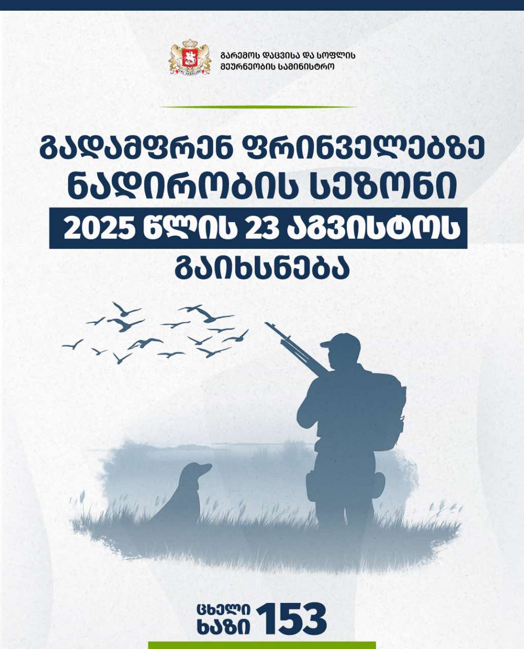 გადამფრენ ფრინველებზე ნადირობის სეზონი 2025 წლის 23 აგვისტოს გაიხსნება