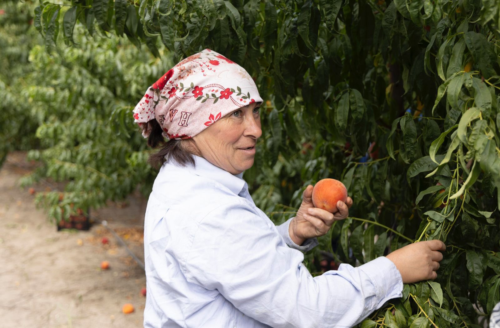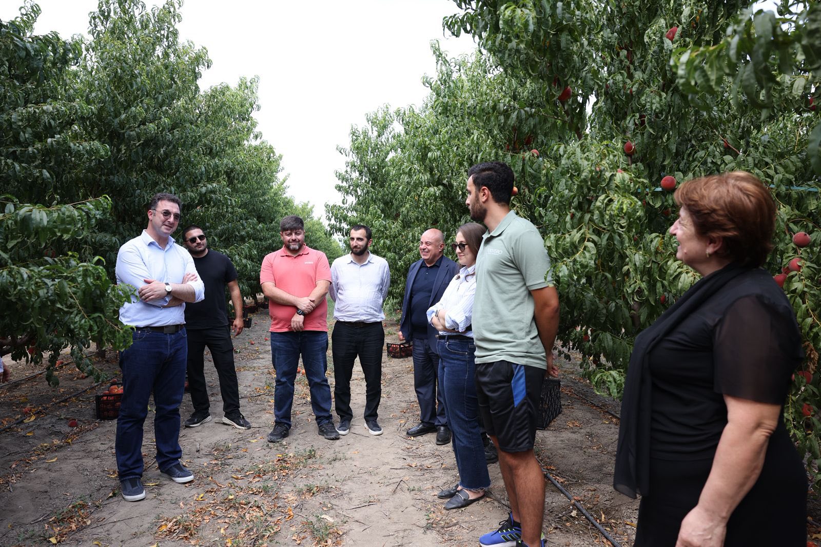 დავით სონღულაშვილი ფერმერებს შეხვდა და ატმის მოსავლის აღების პროცესს გაეცნო