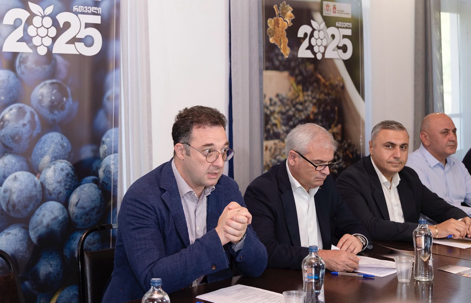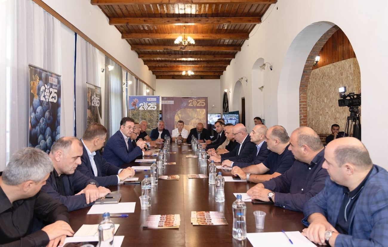 გურჯაანში, რთველის საკოორდინაციო შტაბში გამართულ შეხვედრას ღვინის ეროვნული სააგენტოს თავმჯდომარე ლევან მეხუზლა, სახელმწიფო რწმუნებული კახეთის მხარეში გიორგი ალადაშვილი, პარლამენტის წევრები და კახეთის მუნიციპალიტეტების მერები დაესწრნენ.