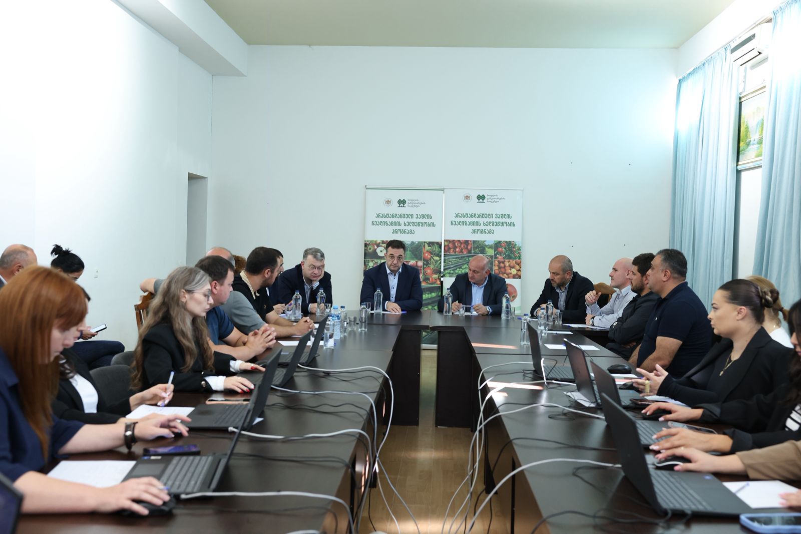 გარემოს დაცვისა და სოფლის მეურნეობის მინისტრმა დავით სონღულაშვილმა ვაშლის მოსავლის აღება-დაბინავების მიმდინარე საკითხების შესახებ დეტალური ინფორმაცია ქ. გორში მოქმედ საკოორდინაციო შტაბში გამართულ სამუშაო შეხვედრაზე მოისმინა.
