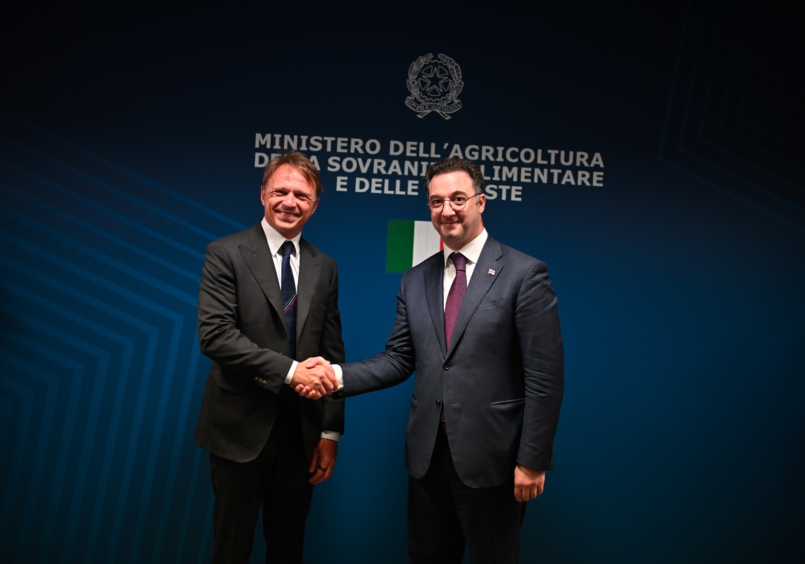 იტალიის რესპუბლიკის სოფლის მეურნეობის, სურსათის სუვერენიტეტისა და სატყეო მეურნეობის მინისტრთან გამართულ შეხვედრას საქართველოს საგანგებო და სრულუფლებიანი ელჩი იტალიის რესპუბლიკაში თამარ ლილუაშვილი, ღვინის ეროვნული სააგენტოს თავმჯდომარე ლევან მეხუზლა და გარემოს დაცვისა და სოფლის მეურნეობის სამინისტროს საერთაშორისო ურთიერთობების და ევროინტეგრაციის დეპარტამენტის ხელმძღვანელი დავით ჩიტაიშვილი ესწრებოდნენ.