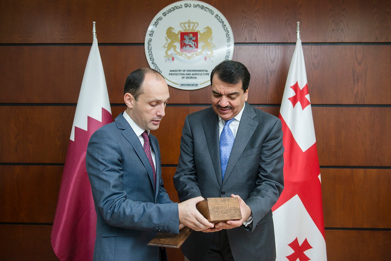 გარემოს დაცვისა და სოფლის მეურნეობის მინისტრმა, ლევან დავითაშვილმა კატარის სახელმწიფოს მუნიციპალური განვითარებისა და გარემოს დაცვის მინისტრს, მოჰამედ ბინ აბდულა ალ რუმაიჰს და კატარის სახელმწიფოს სოფლის მეურნეობის განვითარების, მეცხოველეობის და საერთაშორისო თანამშრომლობის დეპარტამენტის ხელმძღვანელ პირებს უმასპინძლა.