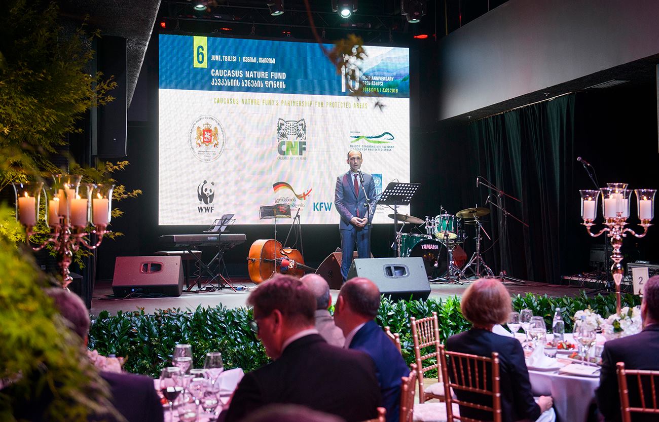 გარემოს დაცვისა და სოფლის მეურნეობის მინისტრი ლევან დავითაშვილი კავკასიის ბუნების ფონდის საიუბილეო ღონისძიებას დაესწრო, სადაც დამსწრეებს სიტყვით მიმართა.ლევან დავითაშვილმა ფონდის მიერ გაწეულ საქმიანობაზე ისაუბრა და კავკასიის ბუნების ფონდს 10 წლის იუბილე მიულოცა.