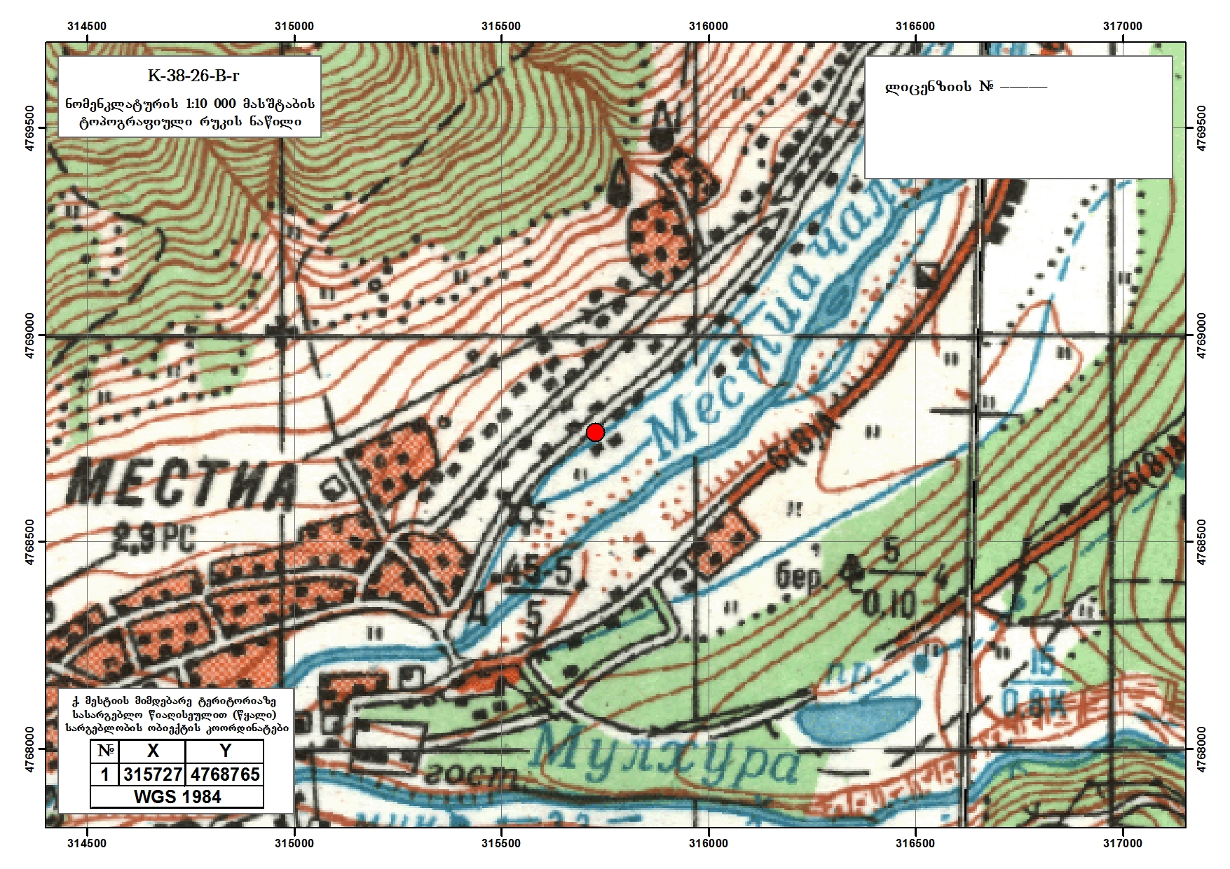 დაგეგმილი საქმიანობის განხორციელების ადგილი: მესტიის მუნიციპალიტეტი, სოფ. ლაგამის მიმდებარე ტერიტორია