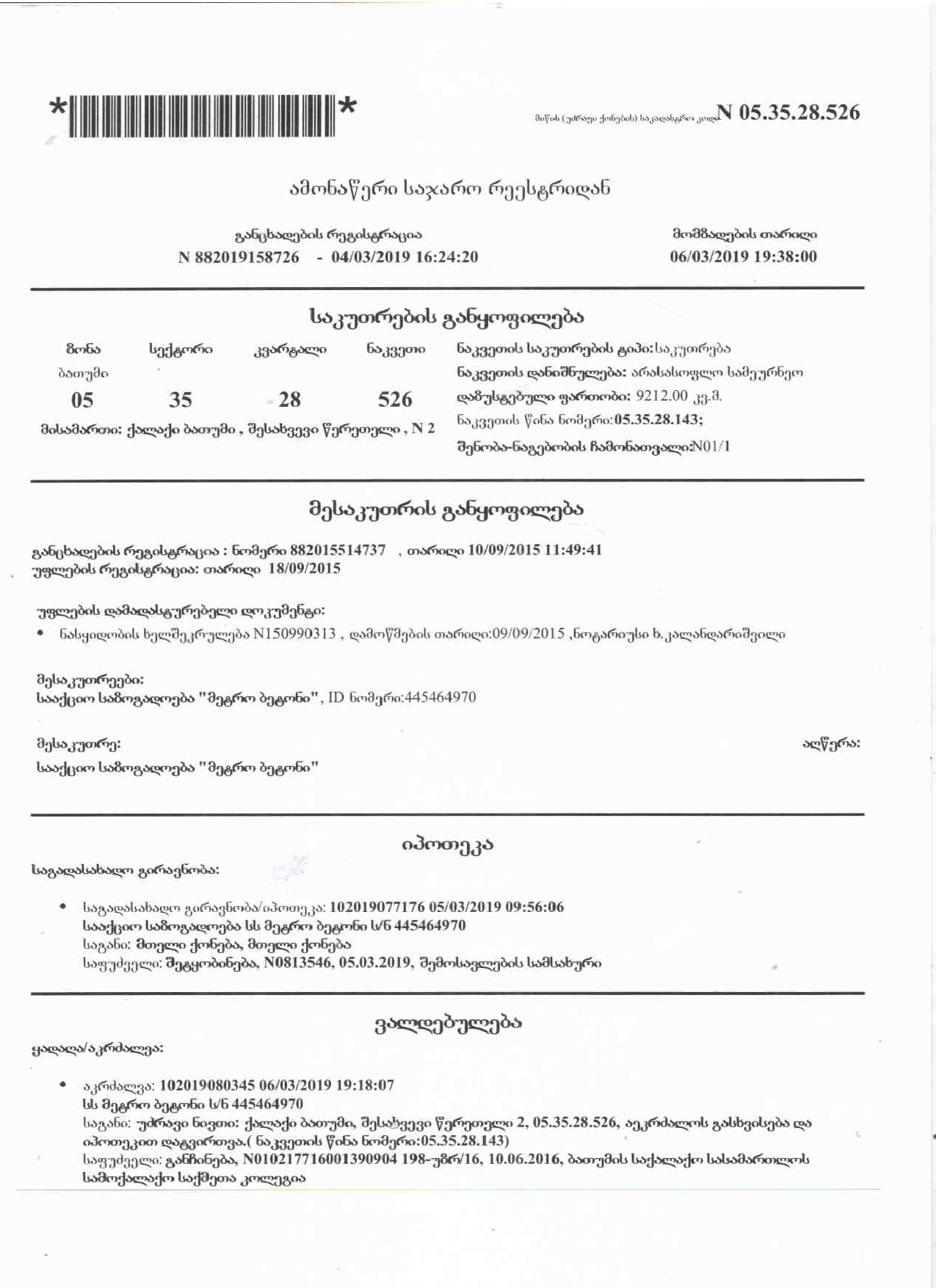 დაგეგმილი საქმიანობის განხორციელების ადგილი: ქ. ბათუმი, ა.შანიძის ქ. N7ა
