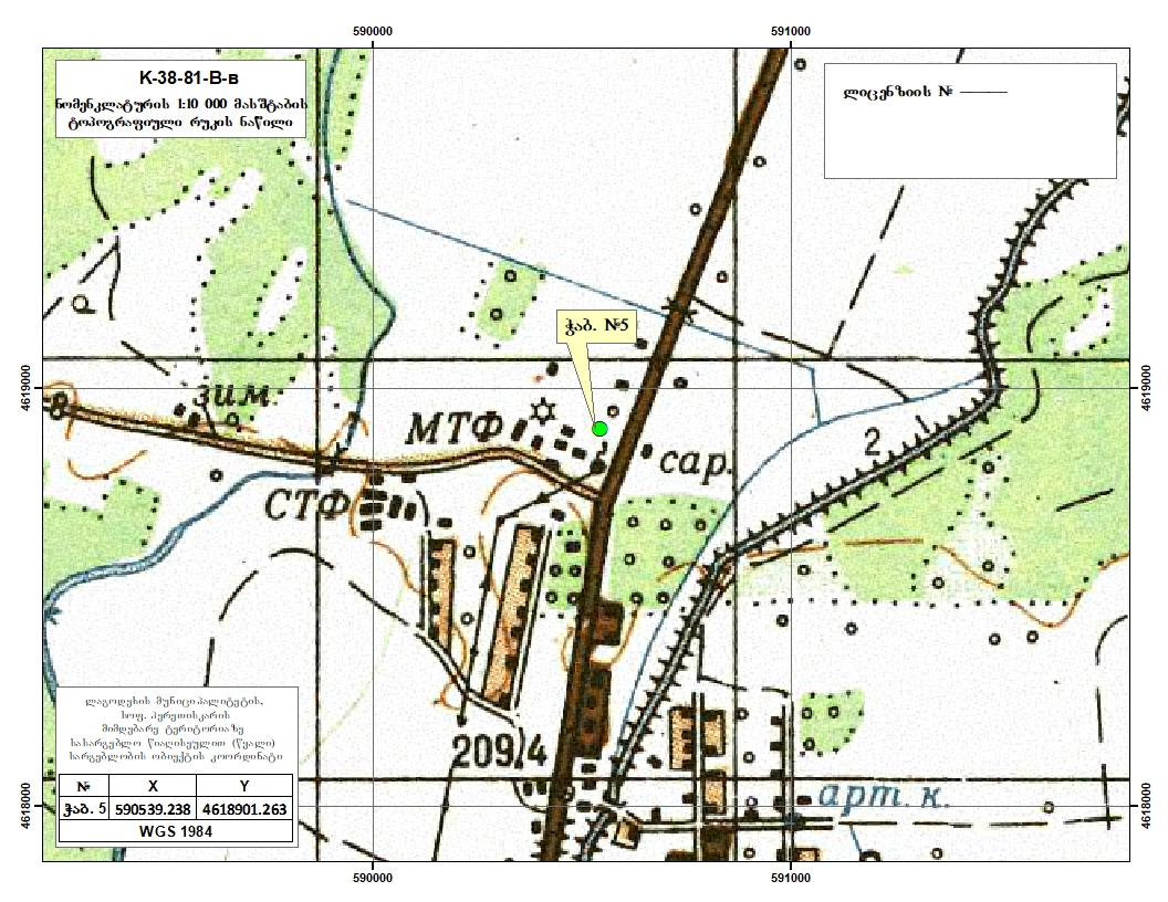 ლიცენზიის გამცემი ორგანო: სსიპ წიაღის ეროვნული სააგენტო;