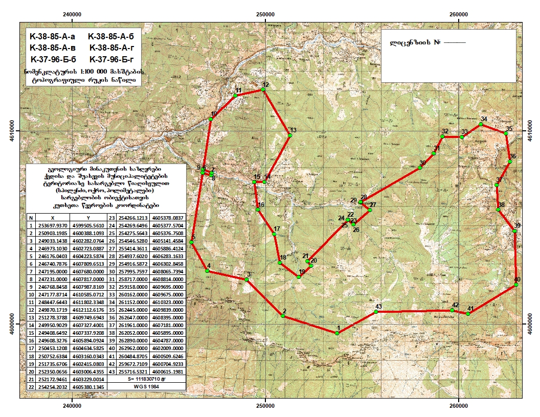 ლიცენზიის გამცემი ორგანო: სსიპ წიაღის ეროვნული სააგენტო;